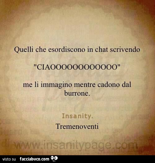 Quelli che esordiscono in chat scrivendo ciaooooooooo me li immagino mentre cadono dal burrone